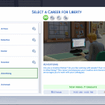I’ve never been a fan of career jumps from degrees so I rarely use them in my game. I am, however, a fan of including degrees as promotion requirements so that’s what I’ve done here. If your sim wants to progress beyond Level 5 of the Advertising career, they’re going to need a Communications degree.