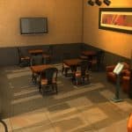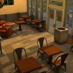 Liberated from the strip that it’s a part of in real life (for in-game logistical reasons,) this building is otherwise as close as the game engine’s limitations would allow to a scale replica of the real-life coffee shop. It has been given decorum consistent with how the shop looked more or less from 2007 – 2010, in keeping with the fanmade stuff pack’s theme of being set during my old college days.