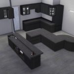 Corner trick: I personally don’t use the corner cabinet (since I don’t like how it looks and I always have lighting issues with it), and prefer to place two straight cabinets, one over the other, using “bb.moveobjects on” cheat.
