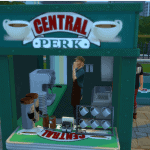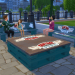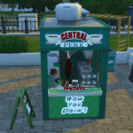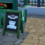 Buy coffee and cakes for your sims! Enjoy the little side park with coffee table, bench, bean and advertising board for your sims and his friends.