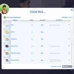 - Rice and Congee: There are over 20 new recipes exclusive to the Rice Cooker, each have different buffs and benefits for your Sim! All available in restaurants!