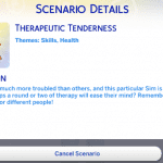 Our database contains only the highest quality Sims 4 mods that meet the most stringent requirements, like Custom Scenario: Therapeutic Tenderness Sims 4 Mod. This guarantees that our visitors have access to the most exclusive and useful files.