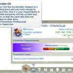 The carreer has ten levels that your Sim can reach, teenagers and adults are able to work in the kindergarten. If your Sim want to get promoted, he must improve different skills like charisma or comedy.