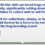 Presenting: a Frog Breeding skill! Yeah, it’s just that. A five-level skill for your frog enthusiasts, complete with game effects when it comes to, quite specifically, frog breeding. But first, let’s get into the details.