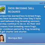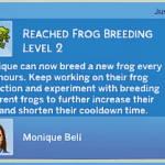 Level 4 Frog Breeding: Frog Breeding cooldown reduced to 40 Sim minutes.