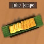 Tahu is Indonesian fried tofu (left) Tempe is original Indonesian fermented soybean, commonly served fried. (right)