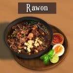 Rawon Rawon is Indonesian beef soup originating from Surabaya, East Java, Rawon utilizes the black keluak nut as the main seasoning, which gives a dark color and nutty flavor to the soup.