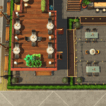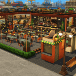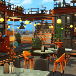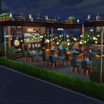 Industrial style food parks are always one of my favorite places to visit so I decided to create one in The Sims! This community lot is situated in the heart of Evergreen Harbor in the lot The Shipping Views overlooking the polluted landscape of the city. This community lot offers an unassuming Michelin-starred restaurant as well as a cozy cafe. You can run the community lot as a Cafe but I recommend you running it as a Restaurant instead.