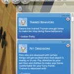 This mod makes so that you can check your pets informations via handy notifications that are able to display current Needs, Fears, Obsessions, Trained Behaviors and a list of all of the Behavior for the type of pet (small dog, big dog, cat).