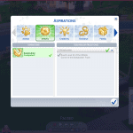 -Revamps all Aspirations to be a single, more difficult, objective. Designed to take most of a Sim’s lifetime.
