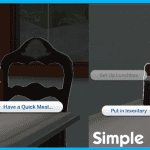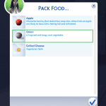 – Now if you don’t play with the Simple Living lot challenge you’ll have the vanilla Maxis quick meals and quick drinks interactions, while if you have the challenge on, the lunchboxes will work as picnic baskets.