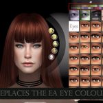THIS IS A DEFAULT REPLACEMENT. It will override the EA eye colours. Put the package file in your mods folder like usual but be aware that you can only have one eye default replacement in your game. You will find the eyes in the eye category (see preview picture 2).