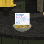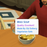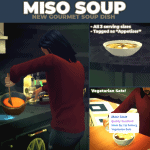 Here we have a new custom food for your sims to enjoy. It’s miso soup, a traditional Japanese soup, which can consist of a range of different ingredients but at the heart if it is dashi stock and miso paste. This version uses vegetarian dashi stock and is packed with tofu, for all your veggie sims to enjoy.