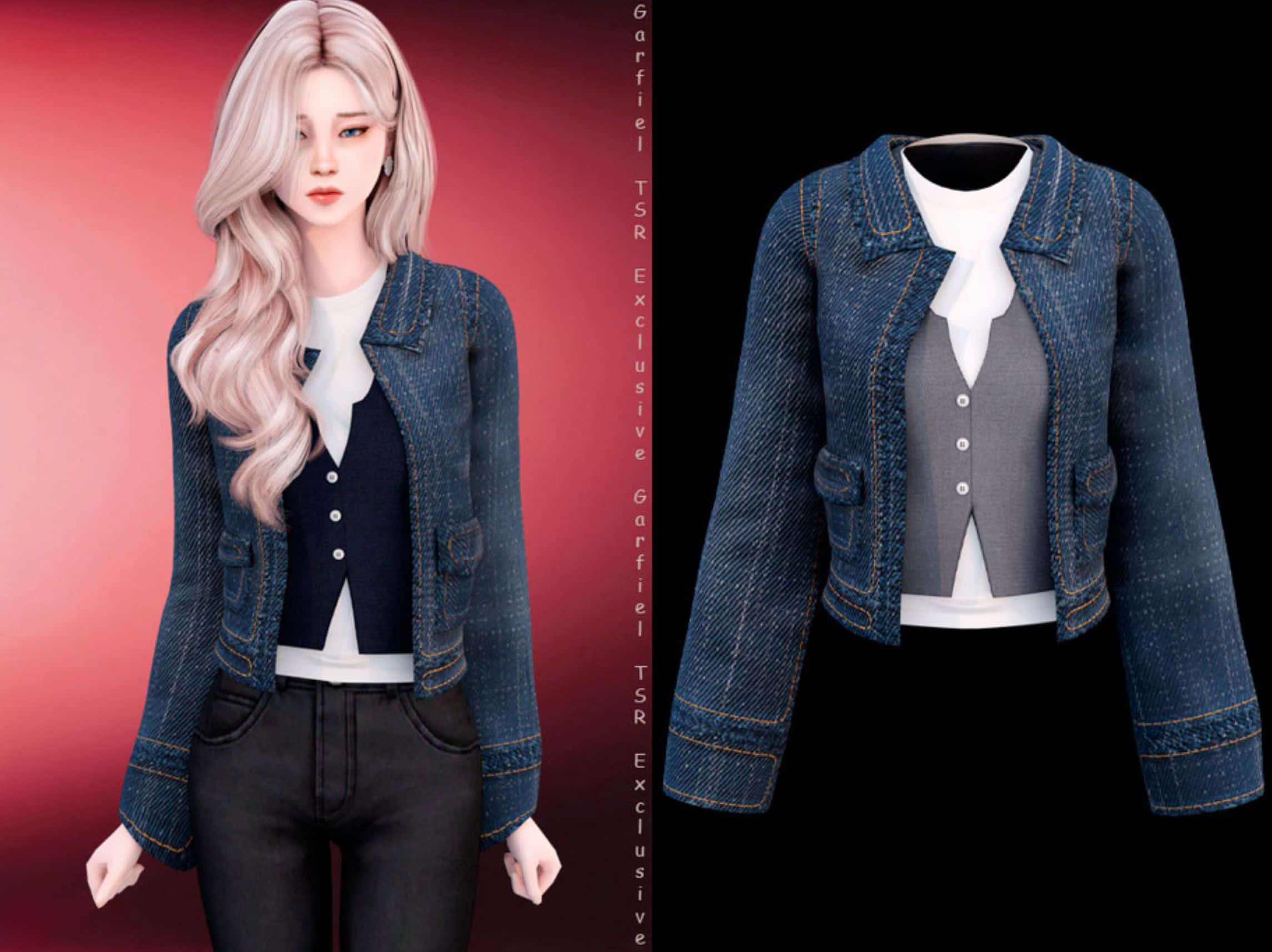 Our database contains only the highest quality Sims 4 mods that meet the most stringent requirements, like Nadine – Denim jacket with vest layers Sims 4 Mod. This guarantees that our visitors have access to the most exclusive and useful files.