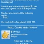 2. Small Claims Investigator – $47/hr, tues-sat, 9-3, promotion logic 3