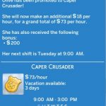 4. Caper Crusader – $73/hr, tues-sat, 9-3, promotion logic 5 fitness 5