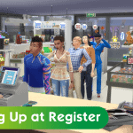 - As they are walking toward the register, the option to “Ring Up” customers is disabled. This is mainly to prevent overzealous employees from leaving the register and trying to ring them up halfway (and you know how well EA handles “try talking to moving sim”).