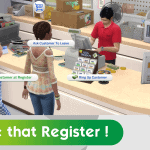 - Owners can now “Ring Up at the Register”. Which does exactly that. Instead of going to the customer, they will look for the register closest to the customer and actually use it. The normal “Ring Up” can last up to 10 sim-minutes (it depends on your retail skill). But this new interaction will last as long as the animations I chose (more details about animations below). That’s why the “Ring Up at the Register” interaction will always be around 6 sim-minutes. No matter how low/high the retail skill is. And no matter what store perks you buy (they will still affect the normal “Ring Up” though).