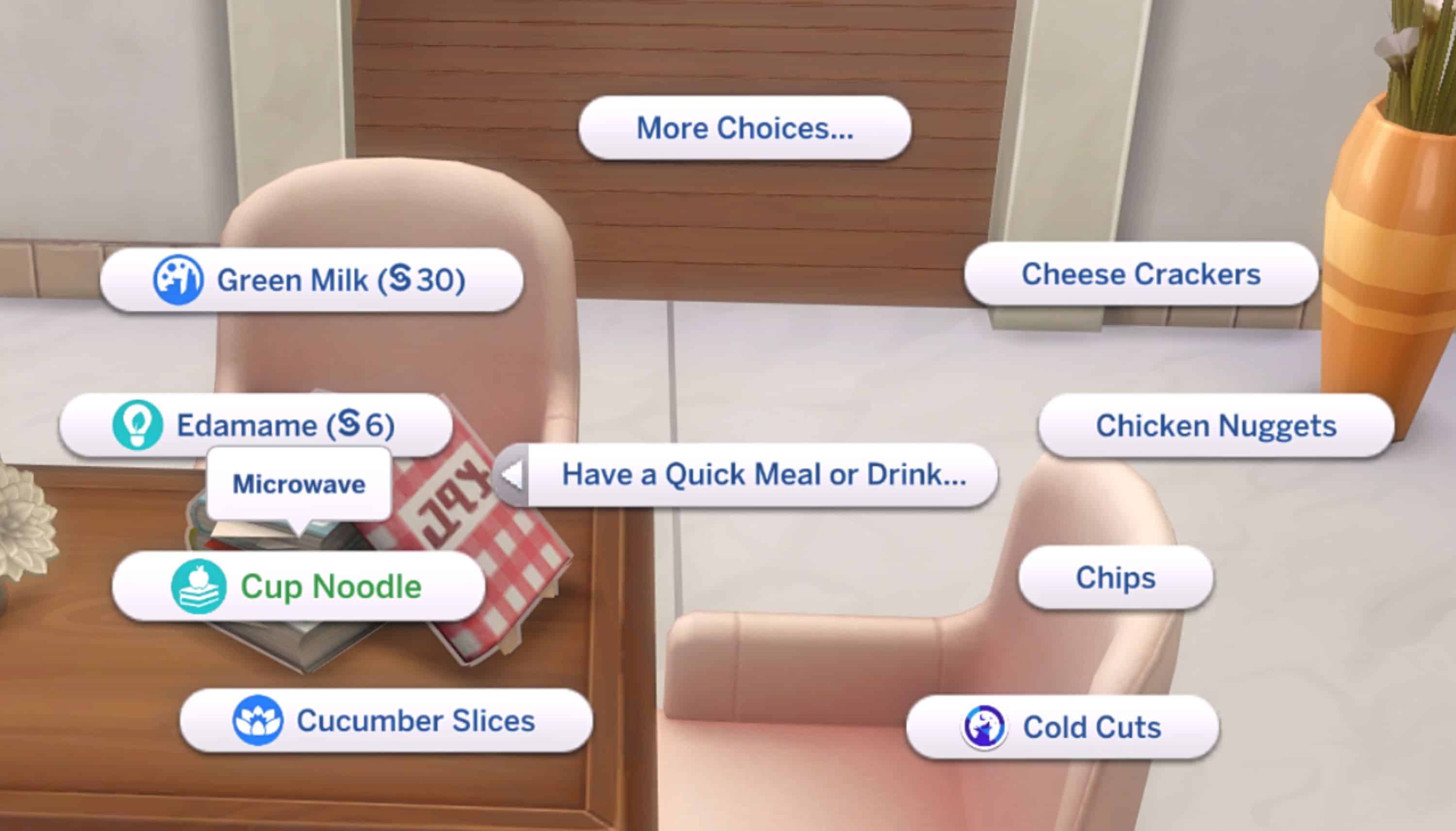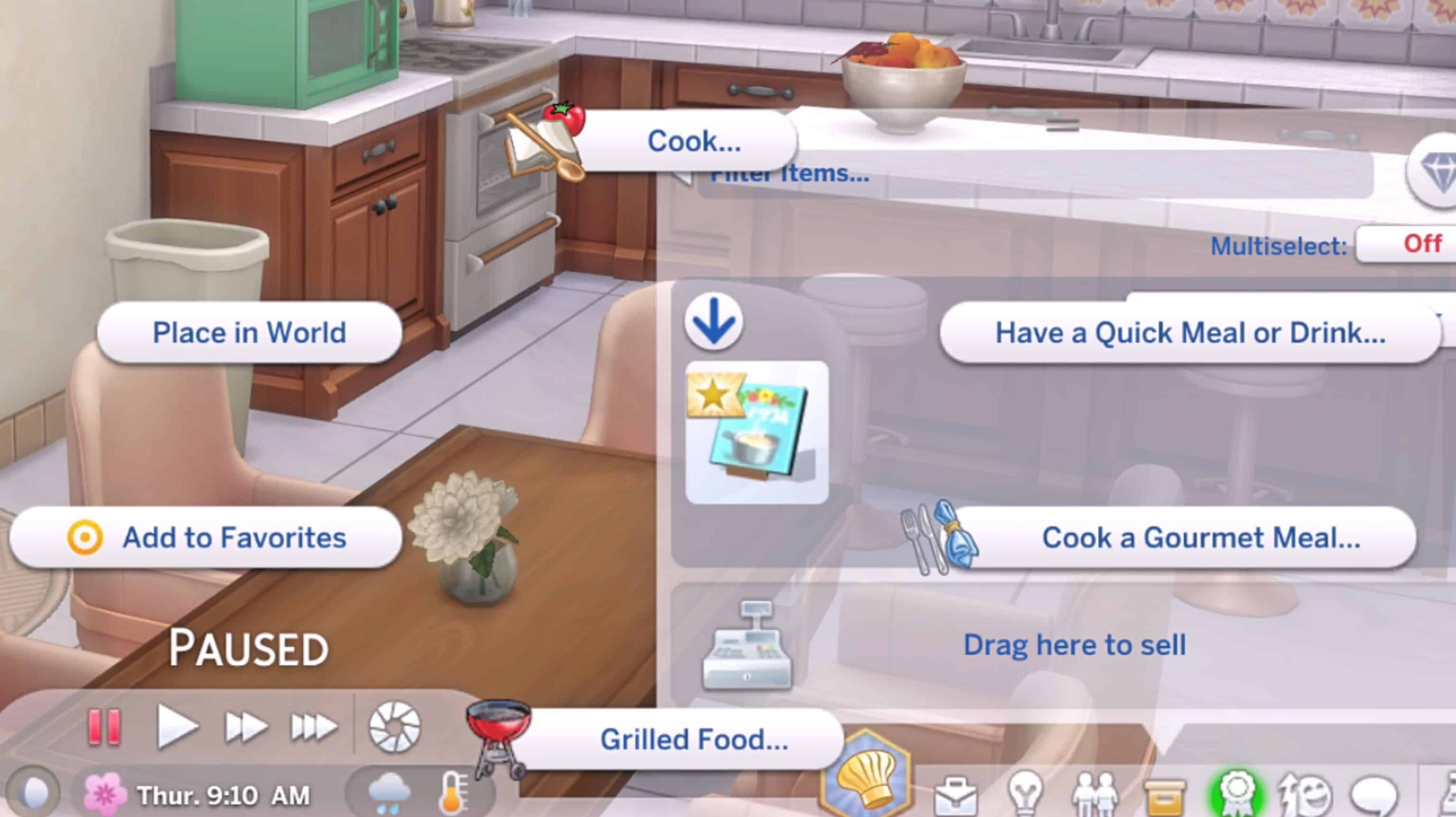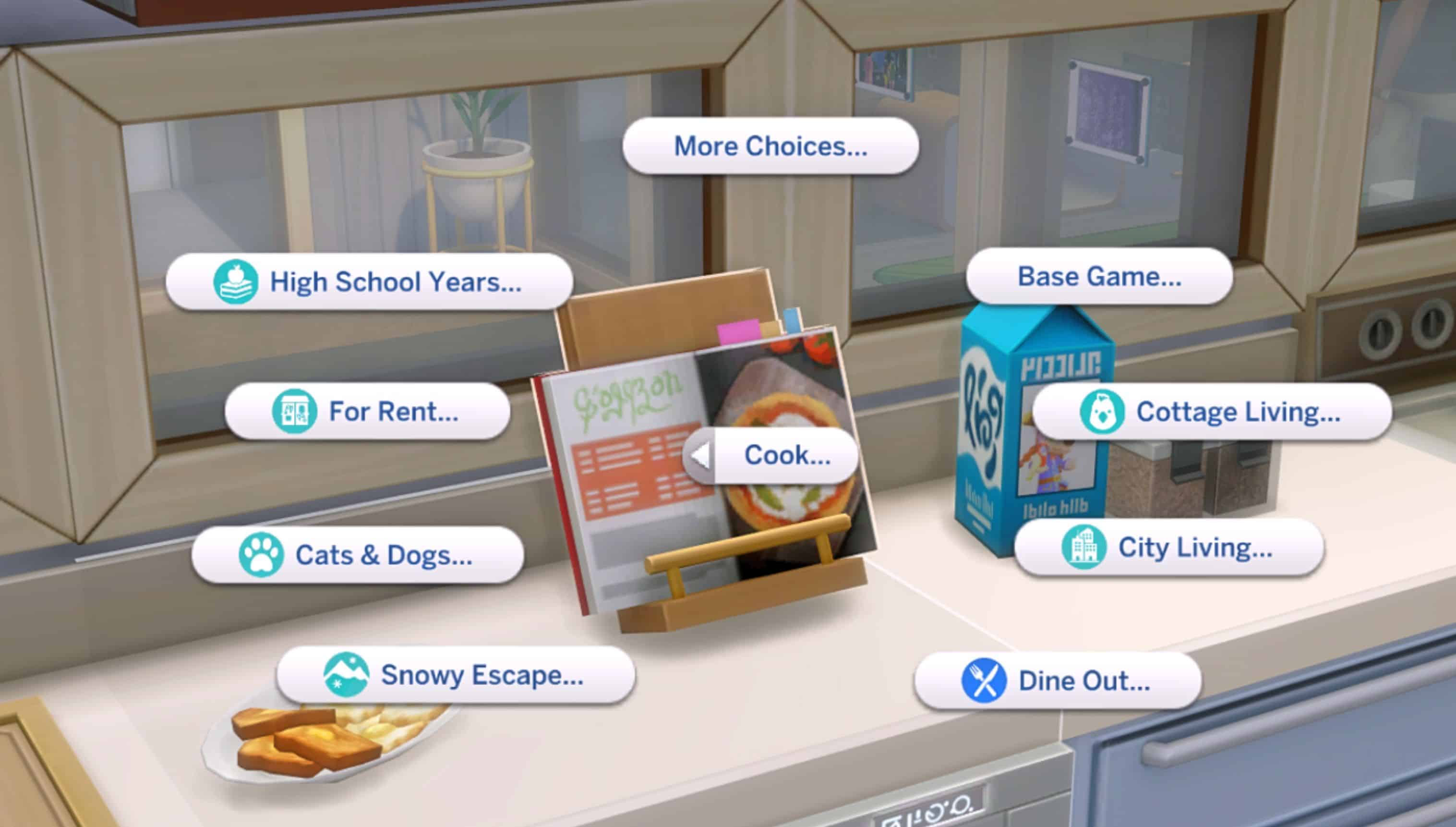 – The cooking menu can also be accessed from the recipe book in a Sim’s inventory,