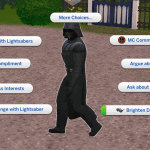 This mod adds “Train with Lightsaber” interaction to your club configuration, letting you create clubs that are themed around Star Wars. Your Sims will receive club points for training with lightsabers as well as for challenging others to duels and lightsaber sparring.
