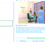 And when you go on the computer, you will see a menu called: “Rheumatology”. You will have four social and three computer interactions unlocked throughout the whole career, and other extra interactions that will be added depending on the track you choose.