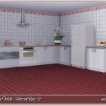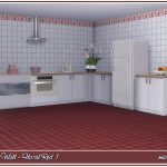 White tile wall with a small, red floral pattern. 4 wall configurations, plus plain white tile option. Part 3 of a 4-part set. Price: 3. Found in Tile.