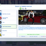 Ultimate Teen has eight original careers; Camp Counselor, Dog Walker, Lifeguard, Movie Theater Operations Person, Pet Store Associate, Spa Front Desk Associate, Tutor, Parking Valet and as a bonus, Retail Associate. I consider Retail Associate a bonus because there is already an EA Retail teen career (which I didn’t realize when I started… oops), but I left this one in because… really, who pays a teenager $33 an hour… like ever?