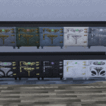 I’ve cloned all the fridges in the game (if there were any added with Star Wars I don’t have that pack) and made them snap into counters, and resized the meshes so they fit under the counters. Some visible items in the fridges with glass doors have been squished in the process, I thought they were cute so I left it.