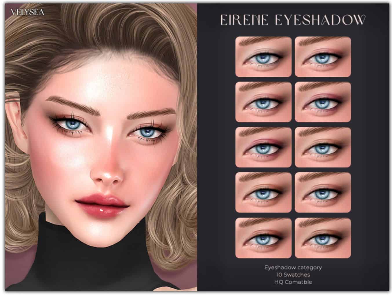 Our database contains only the highest quality Sims 4 mods that meet the most stringent requirements, like VELYSEA Eirene Eyeshadow Sims 4 Mod. This guarantees that our visitors have access to the most exclusive and useful files.