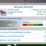 You feel fine. You do feel fine from Monday till Friday from 10 a.m. till 3 p.m. At the same time, you work on Charisma and Logic, and in parallel get your Wellness up to the highest level, because you teach Sims all about Wellness now. Buy yourself a sauna – with fees of 590 Simoleons per hour this won’t be too difficult. Yes, you feel fine, and your clients will profit from that. You probably will regret to be promoted to a