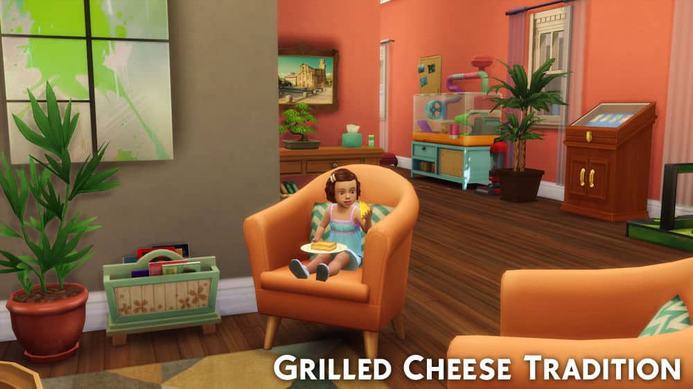 Note: As for the Grilled Cheese Tradition, unfortunately there is no specific interaction for this type of food, so anything your Sim will eat in this time will be valid for this tradition. You should plan to make the sandwiches in advance.