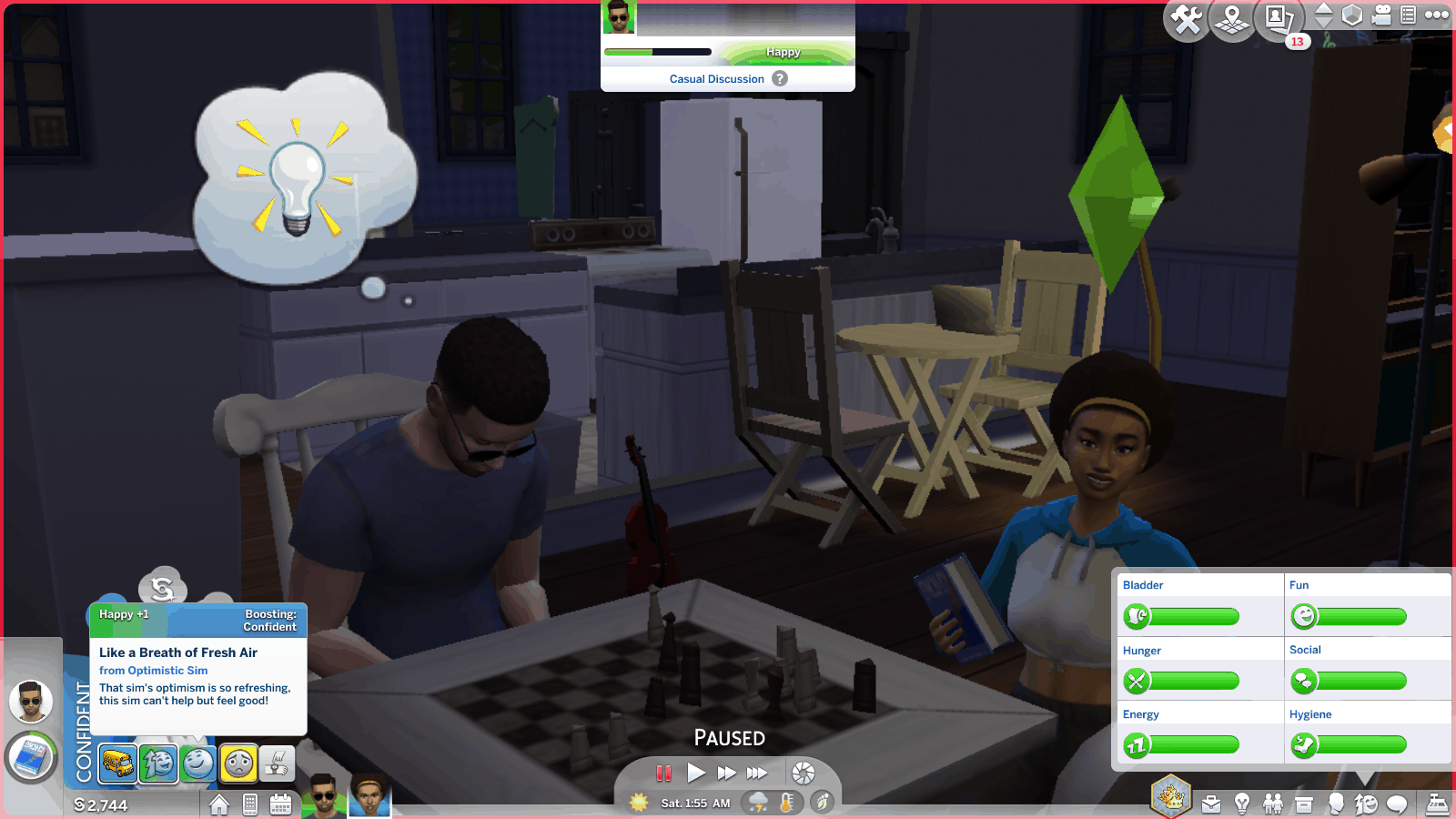 These sims gain motor and fitness skills easier than other sims, gain work performance in the Secret Agent career faster, and their fun need decays more quickly. They make friends faster but gain romance slower, as what makes for a fun friend can be exhausting in a romantic partner! They have a chance of getting bored when doing “non-extreme” activities like chess, meditation, yoga reading, and using the telescope. They have a chance of getting energized randomly or from engaging in “extreme” activities, like exercising, doing basketball tricks, skating, doing magic duels, and exploring space. They have 5 unique socials. They will get energized instead of happy when getting pregnant, engaged, or married. Their whims include basketball, leveling up fitness, exploring space, working on the rocketship, exercising, and becoming energized. This is a child through elder trait.