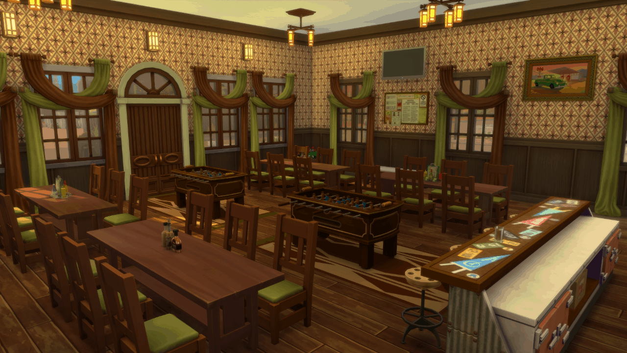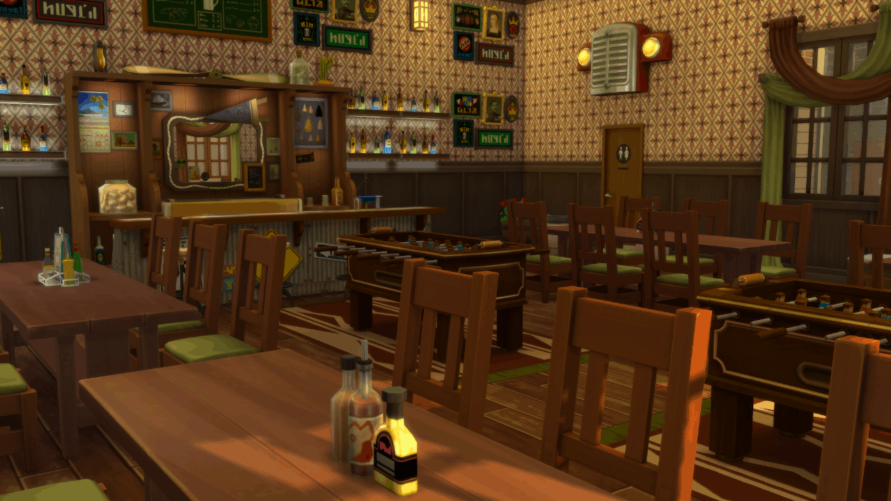 Here’s a minor renovation of 8 Bells bar. I kept the original layout, did not use CC, and did not use the “moveobjects” cheat. Everything should work fine.