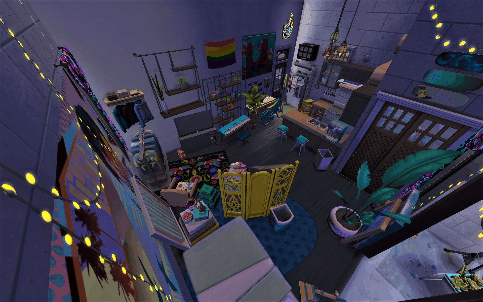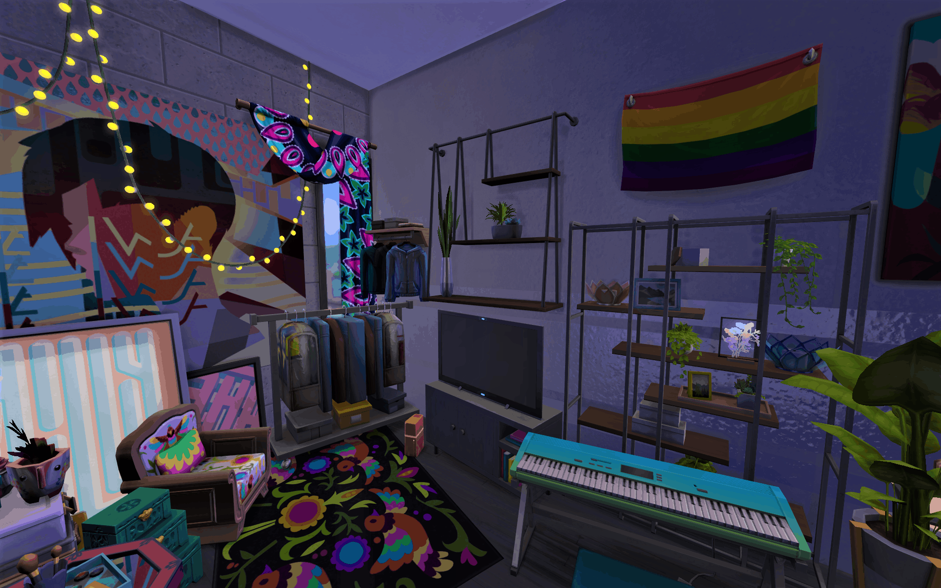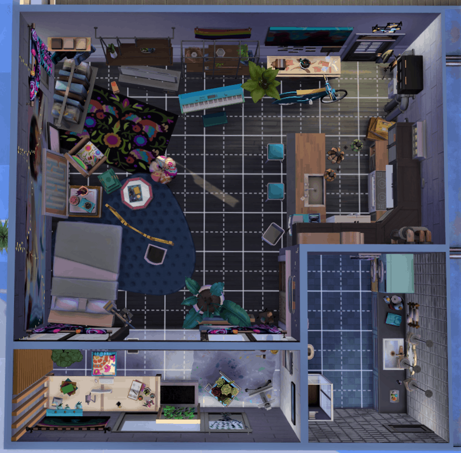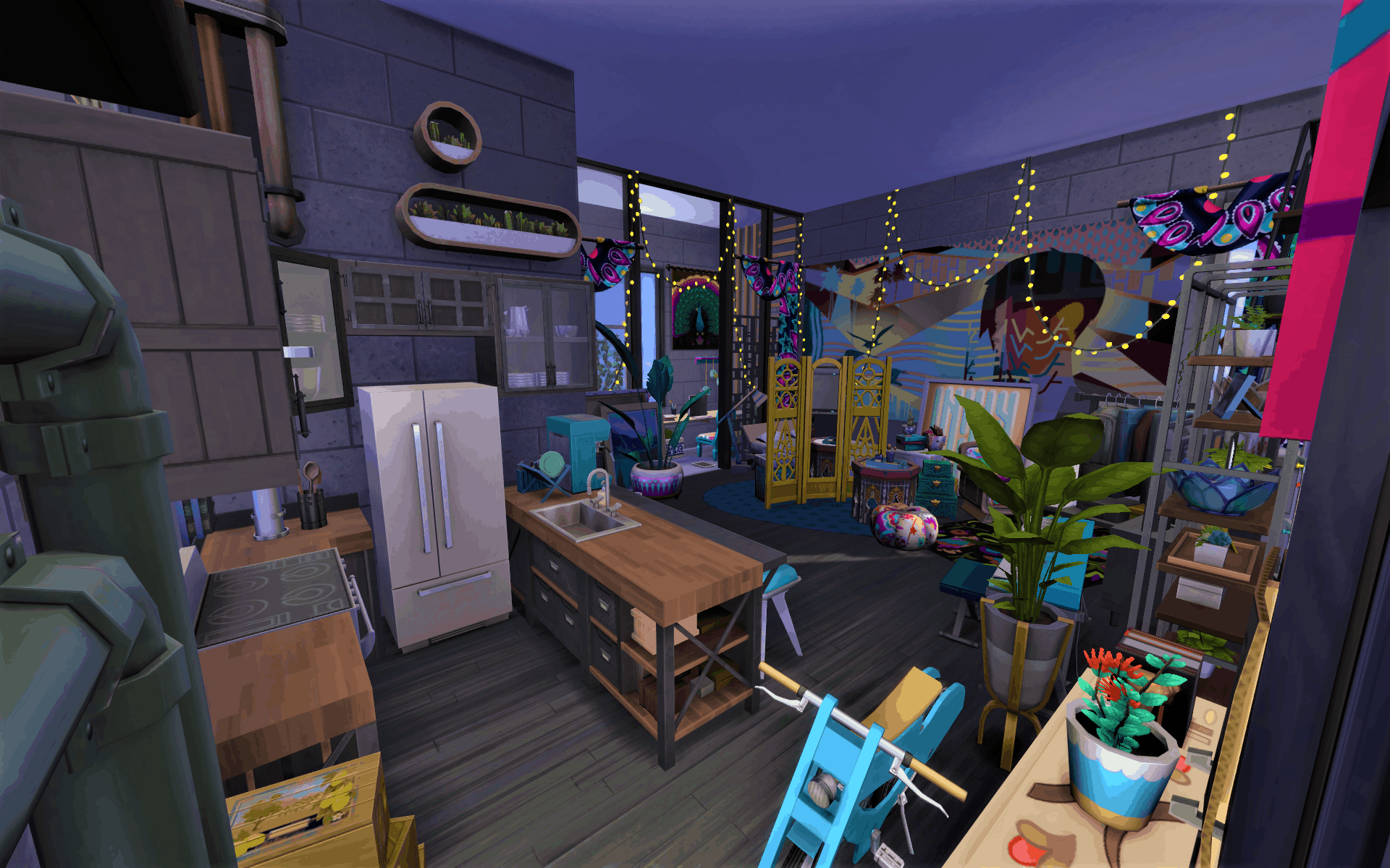 This is a renovation of 910 Medina Studios. I was inspired by the Movie Hangout stuff pack and wanted to build an apartment that was a riot of colour and the appearance of having most of the furnishing having been thrifted! This is CC free, and the only mods are the normal bb. ones (move objects, live edit objects, and hidden objects). I have played the apartment for about an in-game week, and as far as I can tell everything is fully accessible and functional. Have fun!
