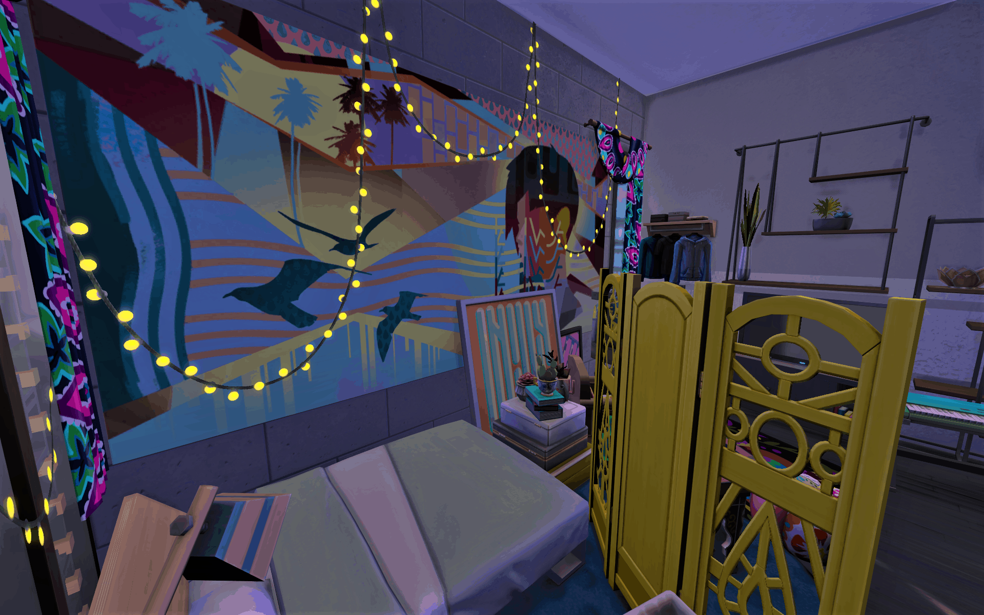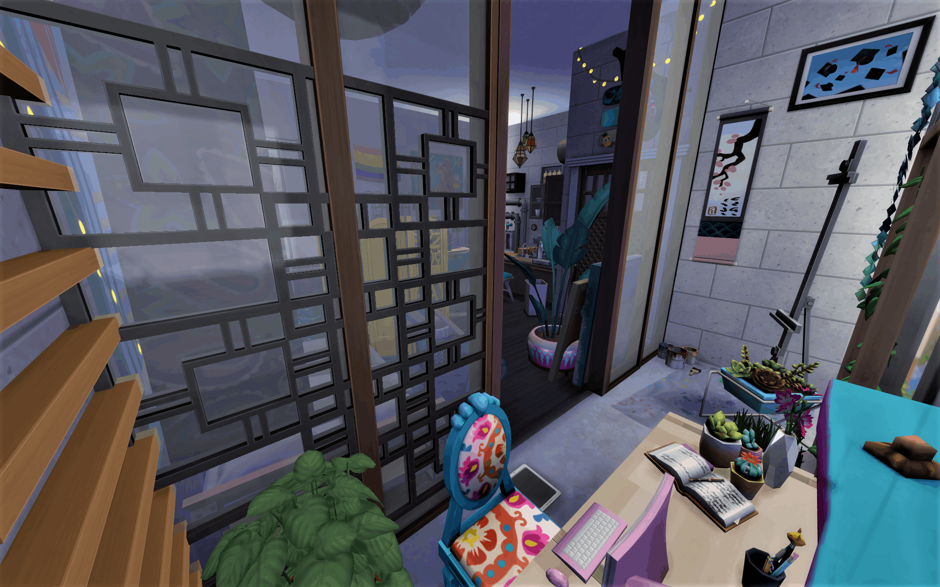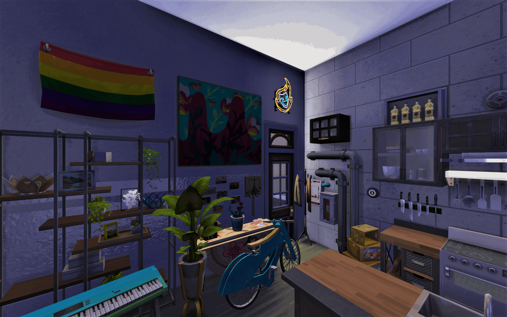 This is a renovation of 910 Medina Studios. I was inspired by the Movie Hangout stuff pack and wanted to build an apartment that was a riot of colour and the appearance of having most of the furnishing having been thrifted! This is CC free, and the only mods are the normal bb. ones (move objects, live edit objects, and hidden objects). I have played the apartment for about an in-game week, and as far as I can tell everything is fully accessible and functional. Have fun!