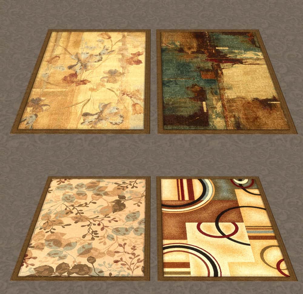 You can find these rugs in the Buy Mode catalog under the Decorations–>Rugs sort. They are called “Simularity Abstract Coffee Rugs” and are priced at ?393. They require only the Base Game. See the thumbnail gallery below for a closer look at the various rugs.
