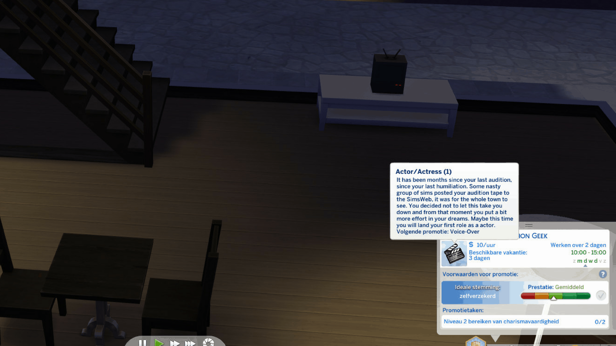 It has been months since your last audition, since your last humiliation. Some nasty group of sims posted your audition tape to the SimsWeb, it was for the whole town to see. You decided not to let this take you down and from that moment you put a bit more effort in your dreams. Maybe this time you will land your first role as a actor.