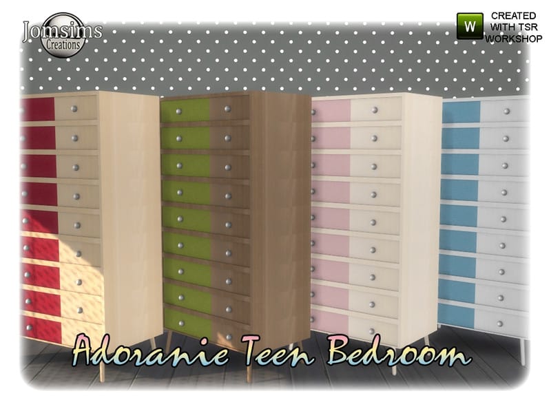 Our database contains only the highest quality Sims 4 mods that meet the most stringent requirements, like Adoranie teen bedroom dresser 1 Sims 4 Mod. This guarantees that our visitors have access to the most exclusive and useful files.