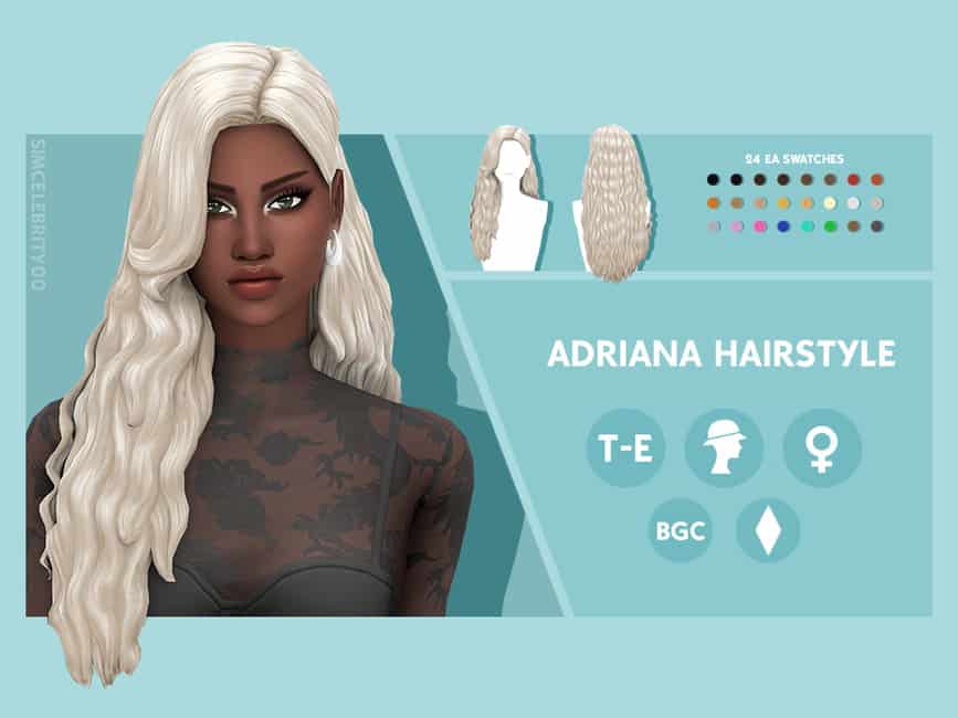 This long haired, sophisticated, and hat compatible hairstyle is available for Teens-Elders. This Hairstyle will make any sim look their best and comes in all of EAs 24 Hair Swatches.