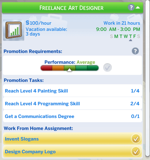 For reasons known only to Sims 4, in spite of completing all work from home tasks, sometimes the boss is disappointed with the work done. I don’t actually know why this happens but, as you can see with the notifications above, you get the money. Just the notification is a bit off. This is a known issue and as yet, there’s no known solution.
