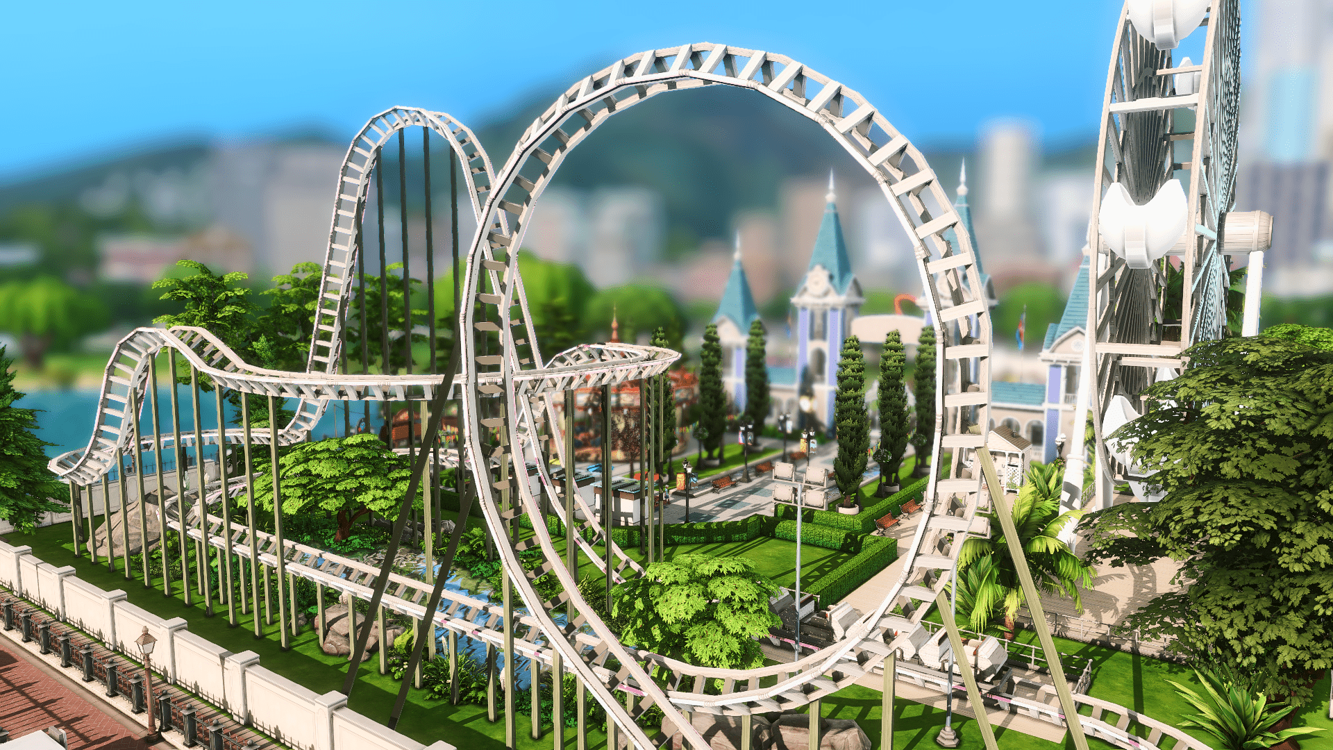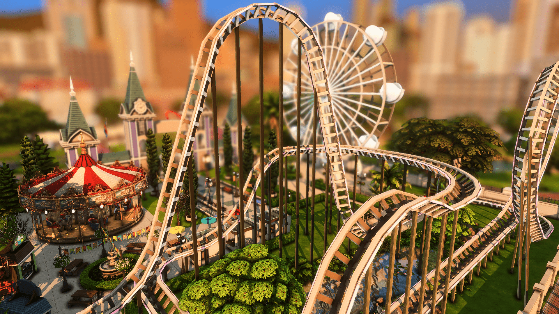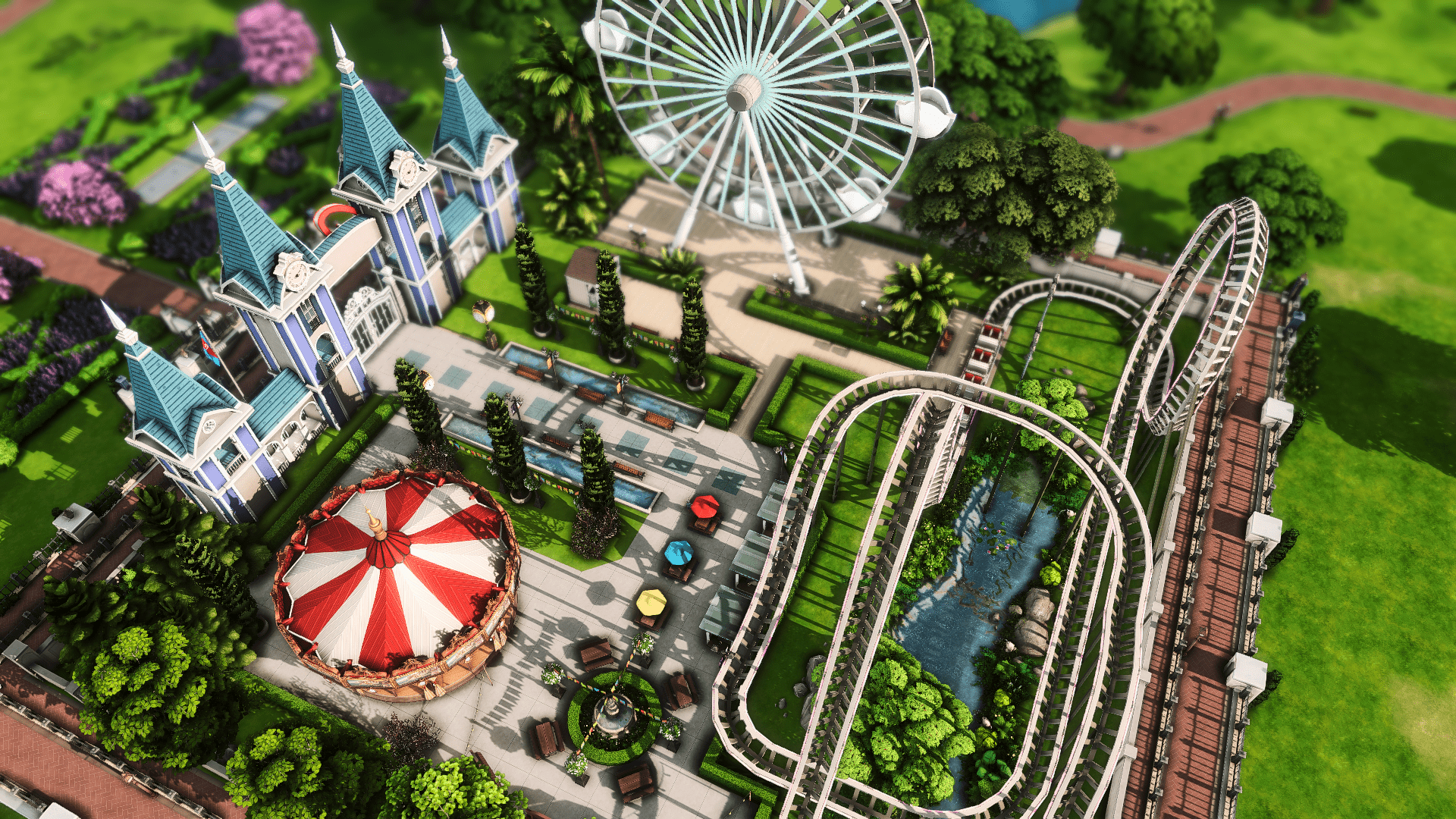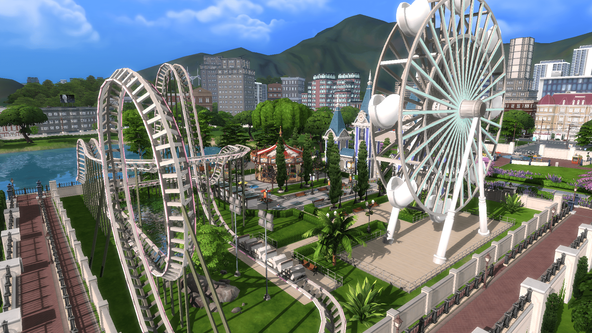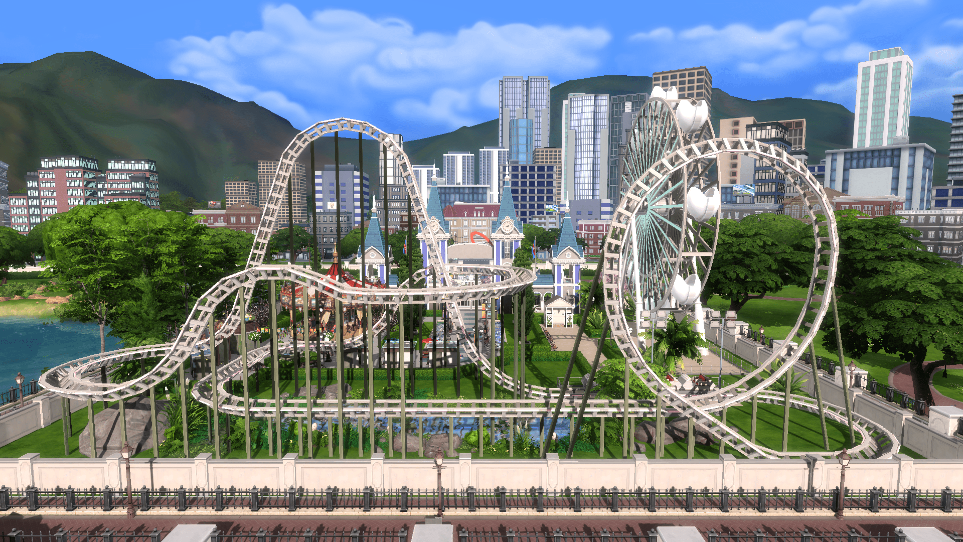 Enjoy the best family moments in this huge amusement park in the center of San Myshuno. You’ll love to have this view dring the night with all the lights on. The Rollercoaster, ferris wheel and carroussel are not functional since they were built using only objects that we have in game. The park has a food court and a bathroom but the rides are only contemplative. Hope you enjoy!