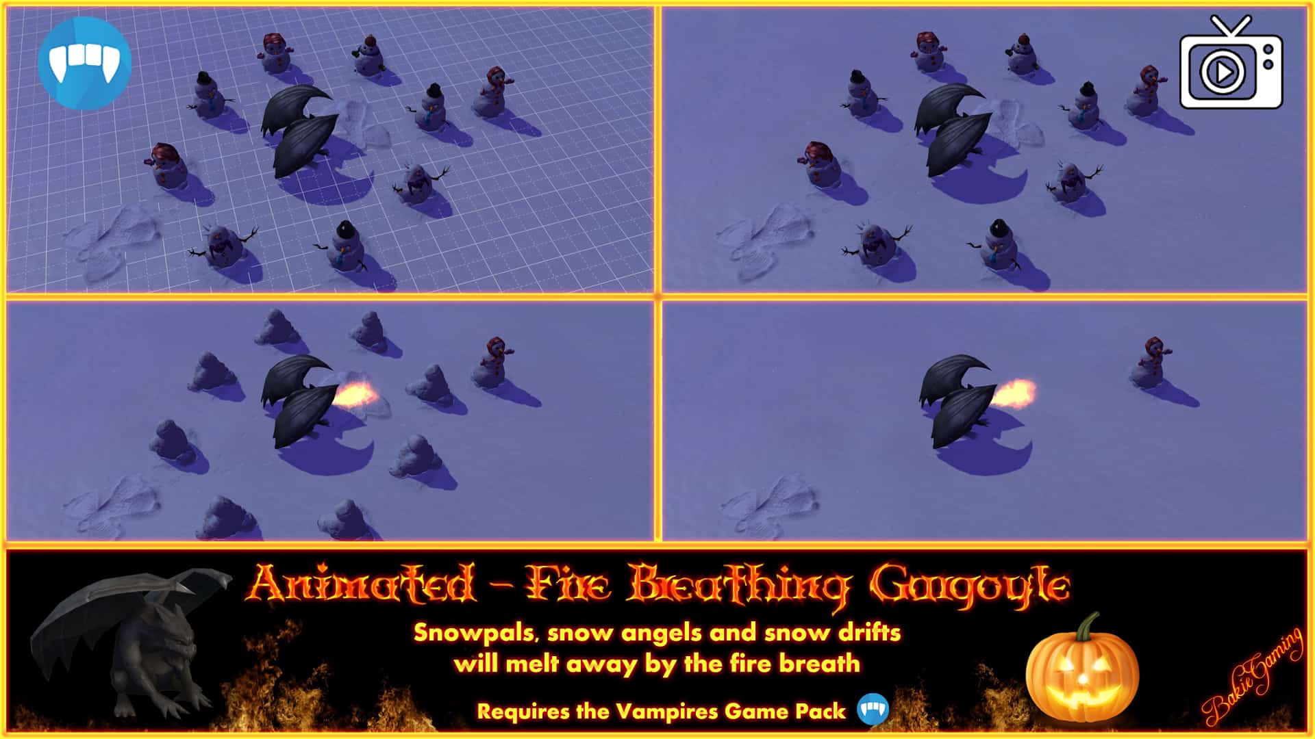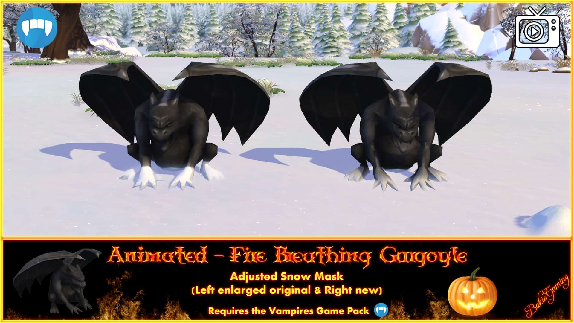 The statue of the gargoyle itself is already part of the game if you have the Vampires game pack. There fore this pack is required for the Fire Breathing Gargoyle to appear in your game too.