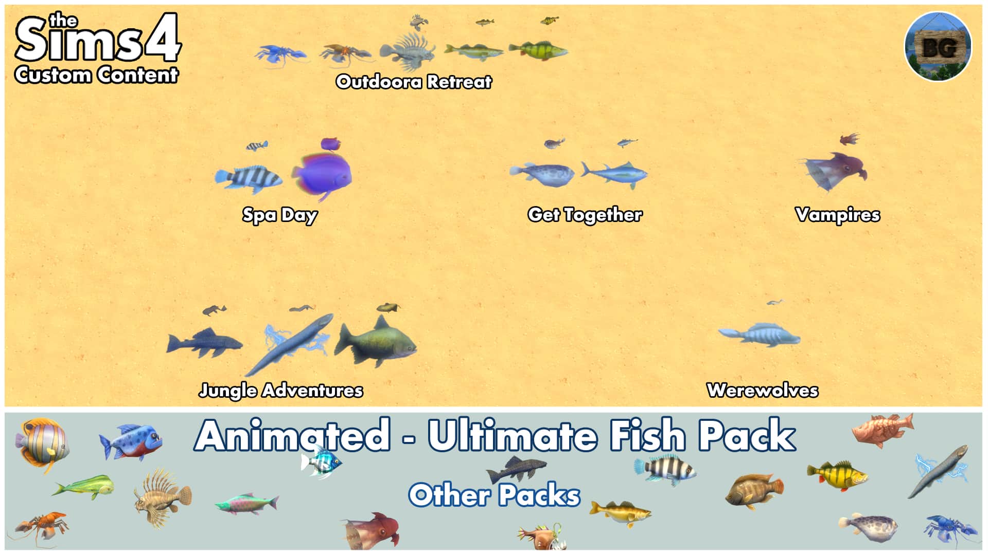 There were a lot of people asking for more Fish Packs after my first pack containing 12 Base Game fish. The thing with the first pack though, was that although the fish came from the Base Game, you still needed the Get Famous pack as I used tuning from that pack.