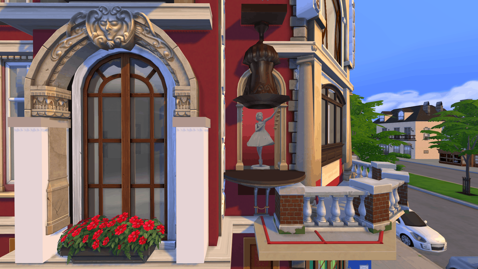 Only the top floor is fully furnished. Other 3 floors are empty. Also i built it with TOOL mod which allows to place items outside the lot. I was really disappointed when i replaced the house on another lot and everything disappeared I had to remove these objects outside the lot. But I left a few pictures of what the streets looked like. So if you want you can easily find a mod and try to recreate the streets as in the photo. But this is purely my vision. These details don’t greatly affect the overall perception of the building. Maybe it was obvious that the objects wouldn’t be saved (but not for me, haha). I’m also sorry if your characters can’t get through somewhere or have a problem with mailbox . Due to the game crashes, I didn’t have the nerves to check if everything working properly.