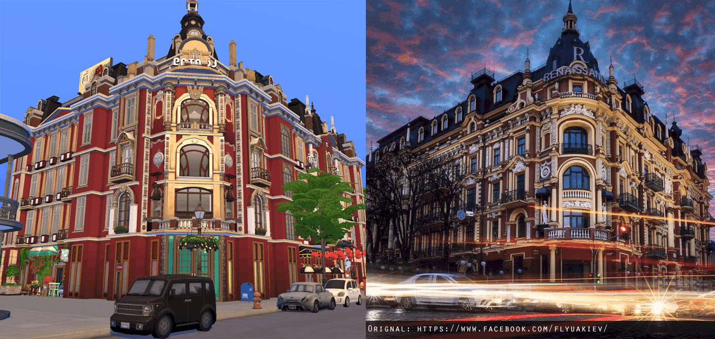 There are no CC in this building. Cars and some construction elements are taken from debug. The paintings were painted by my sim from the photos.