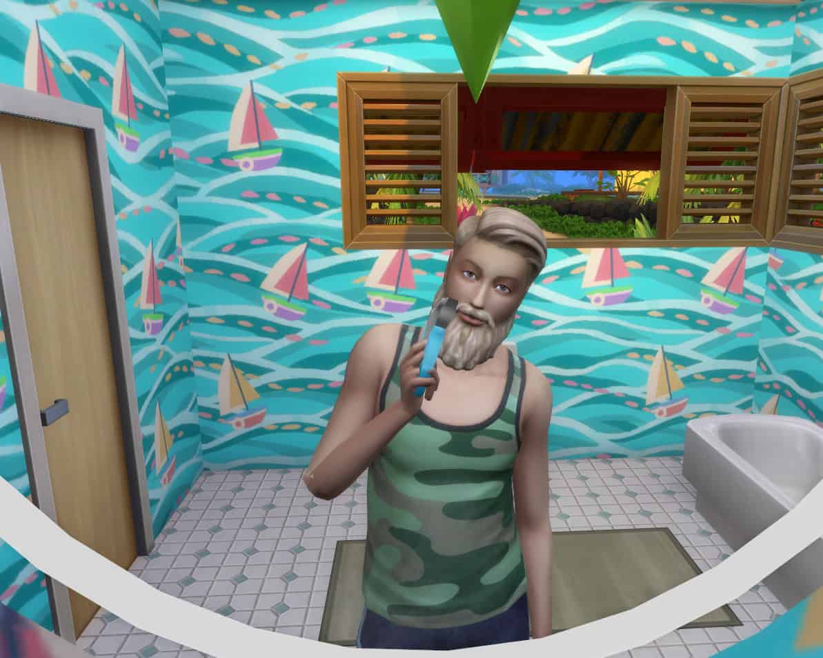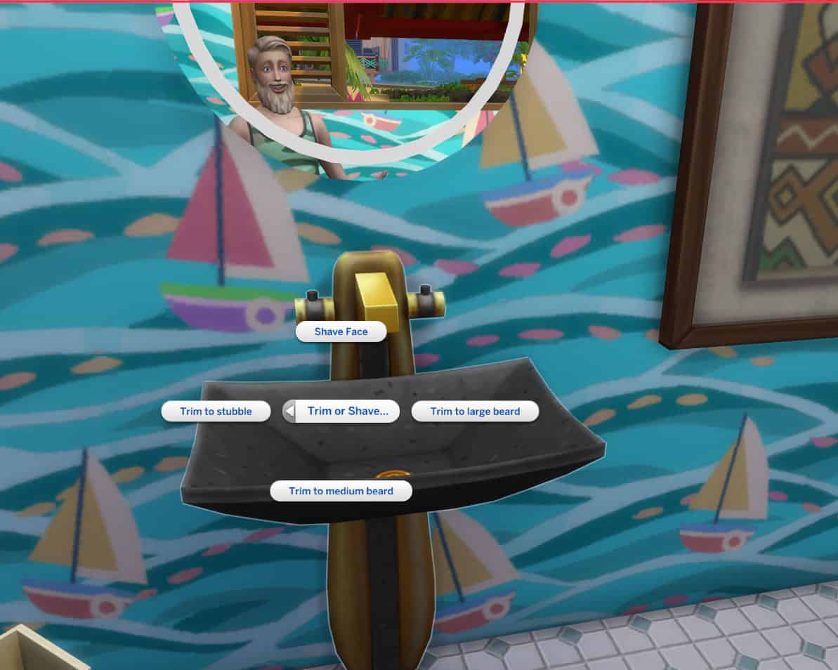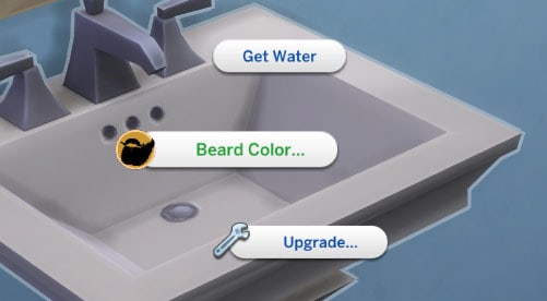 Sims are able to trim their beards to shorter lengths or shave at any sink. A sim can only shave stubble, so if they have a beard they will have to trim it first. The picker options will change accordingly. Sinks will get dirtier when shaving or trimming beards, clumps of hair will fall on the floor. Sometimes sims that shave might nick themselves.