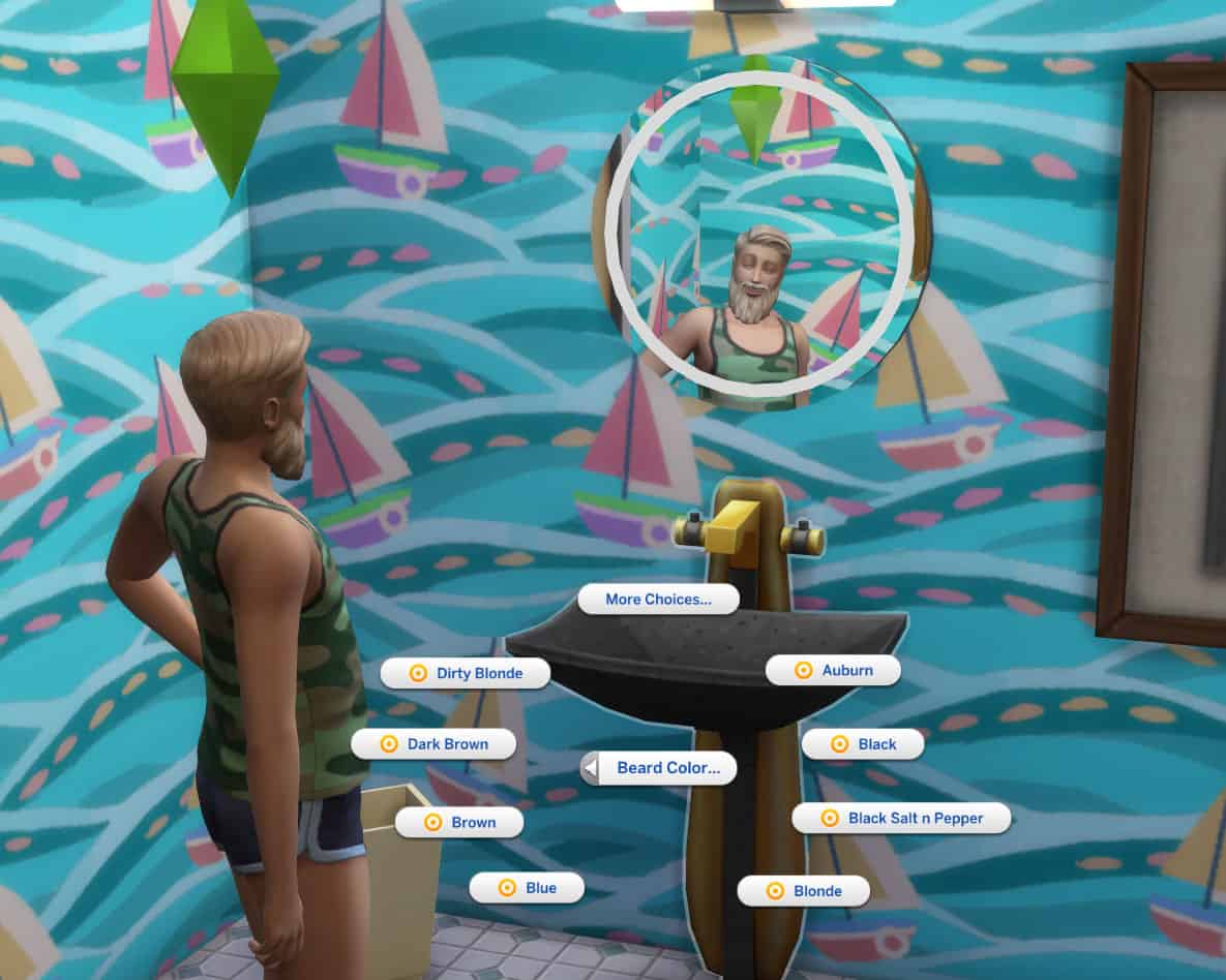 To activate beard growth on a sim, click on any sink object in game and choose a beard color out of the default EA 18 colors.