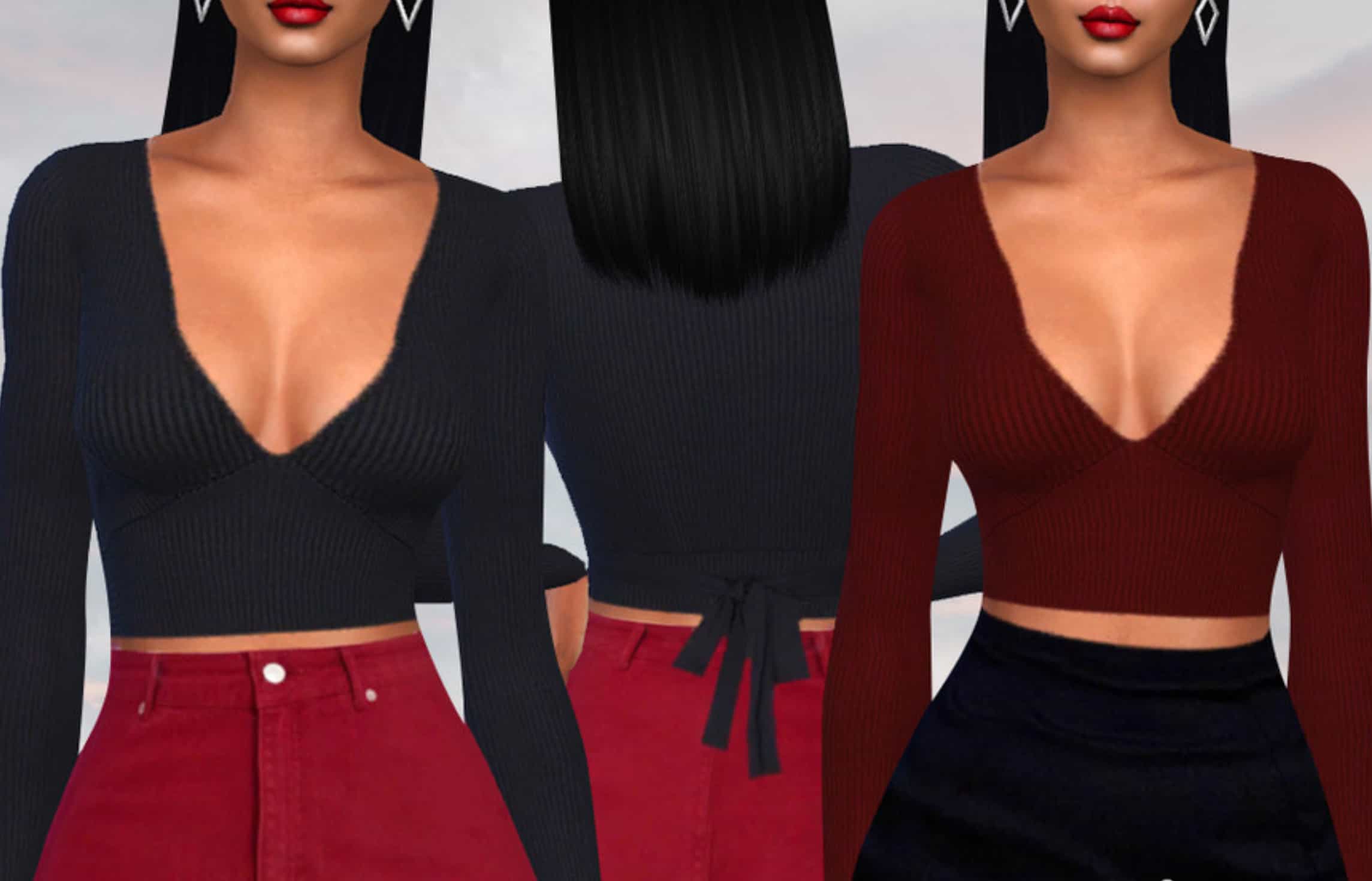 Our database contains only the highest quality Sims 4 mods that meet the most stringent requirements, like Back Tied Deep V Neck Blouses Sims 4 Mod. This guarantees that our visitors have access to the most exclusive and useful files.