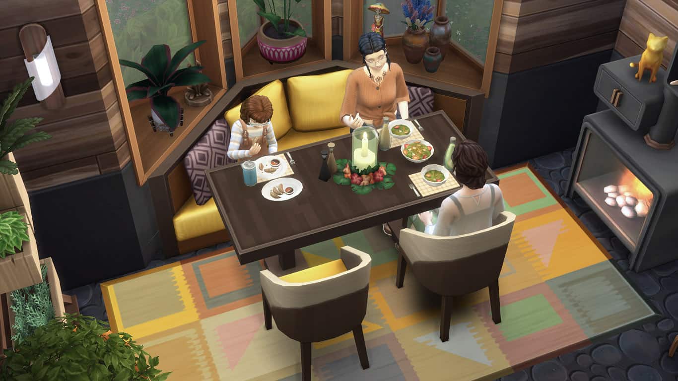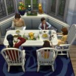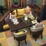 – Your sims will slide into the seat like they do with booths, but leave at least one end of the table chair-less or your sims won’t be able to get into the seat. If you add a chair to one end, you might have to direct a sim to slide over so the second sim can get in.