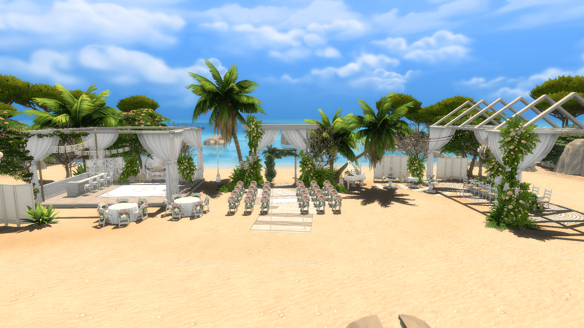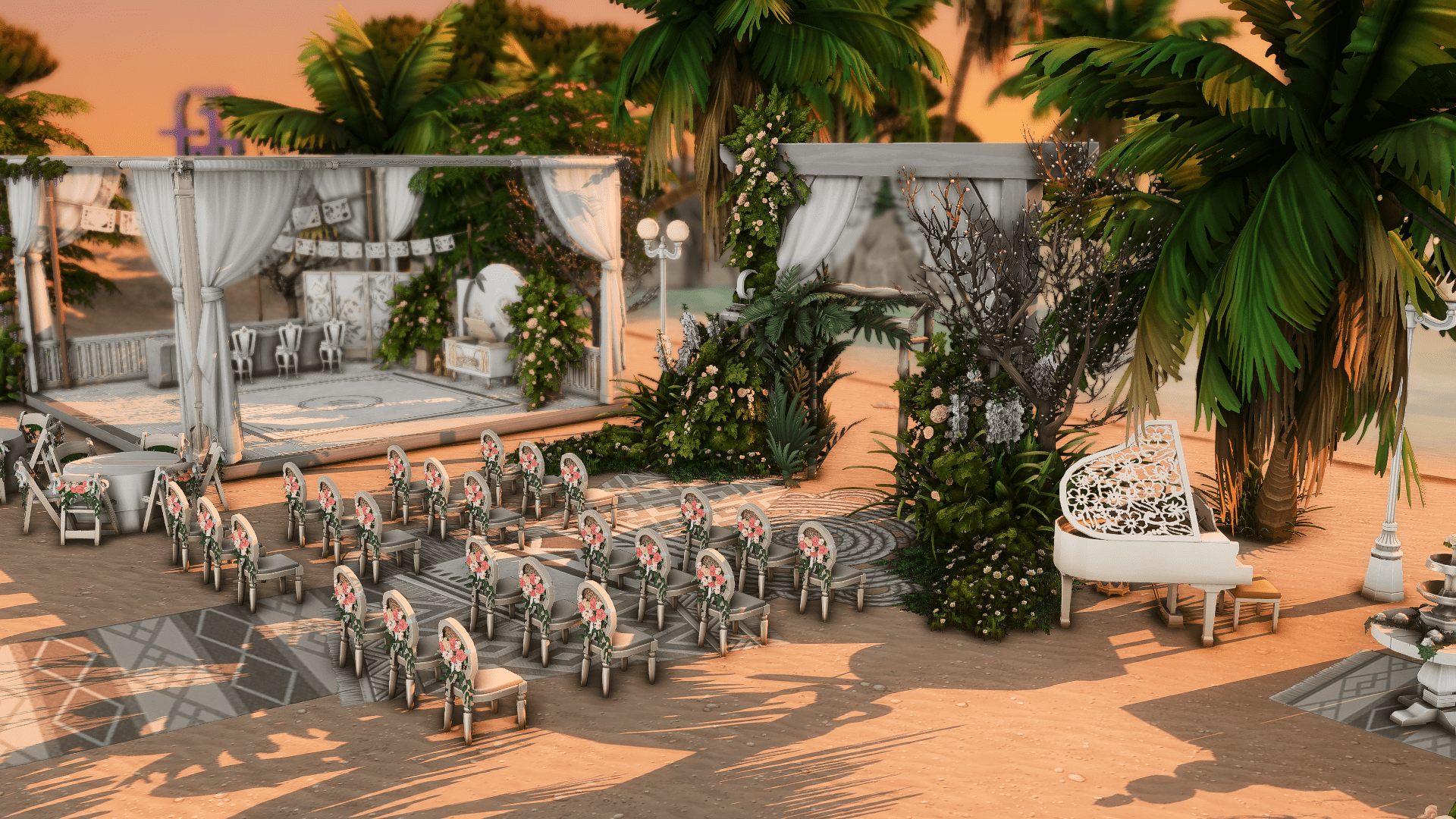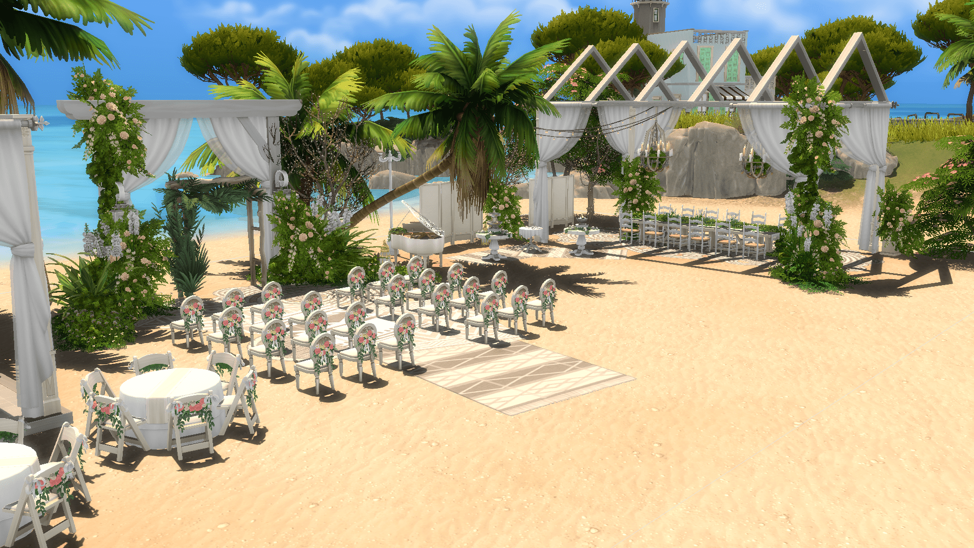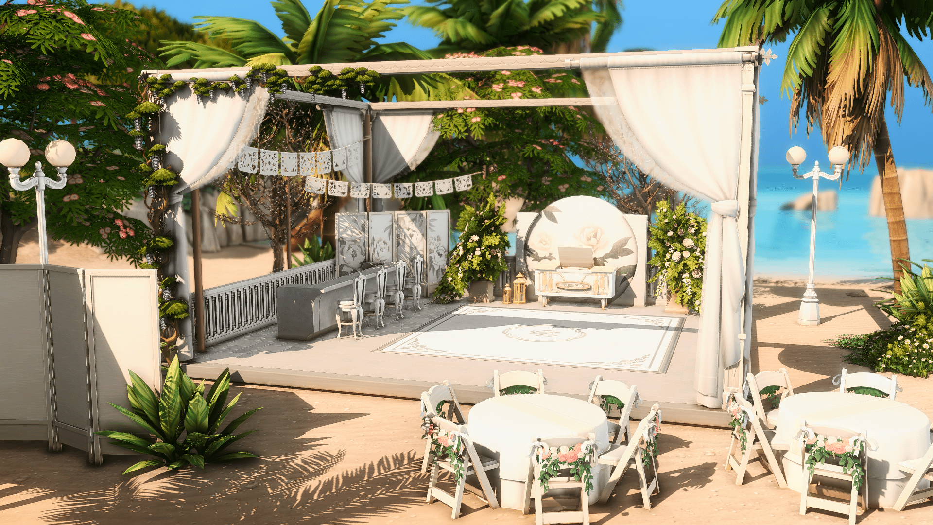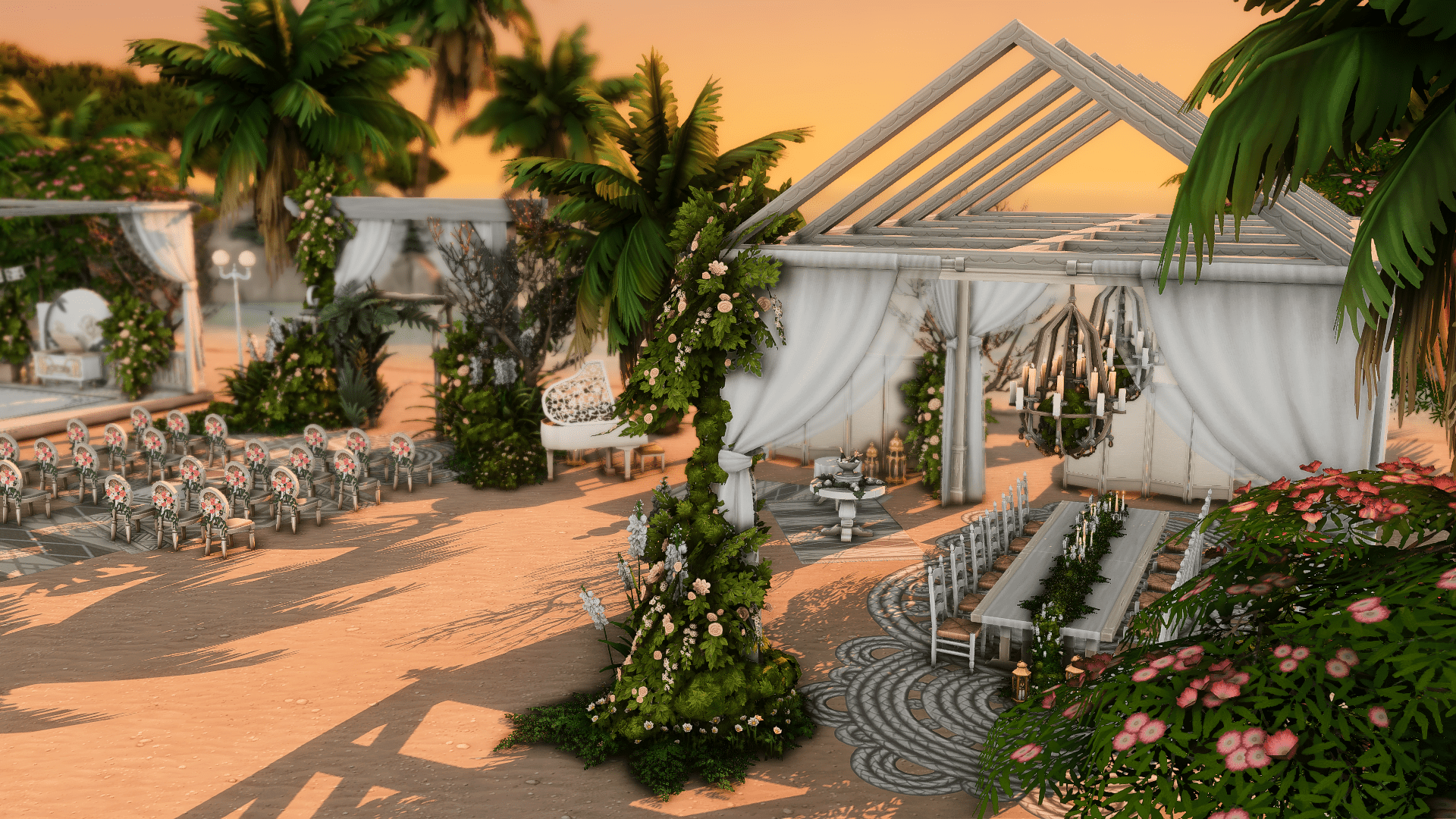 Imagine the most romantic place for your Sims tie the knot. With this beautiful lot your Sims are ready to enjoy the moment of their lives! This lot is a wedding venue and was built thinking of a complete wedding ceremony.
